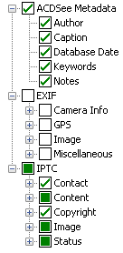 Click the Metadata View drop-down list in the Metadata pane to select one of the view options: Default Metadata View (most commonly used fields), All EXIF, All IPTC, ACDSee Metadata, or saved custom views.