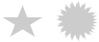 The multigon on the left was duplicated and then rotated 20°. Each time Duplicate with Transform was applied, the resulting duplicate would rotate an additional 20°. The final duplicate had a rotation of 200°. |